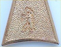 kleinen Täfelchen werden anschließend auf einen glatten Prägestock aus Stahl