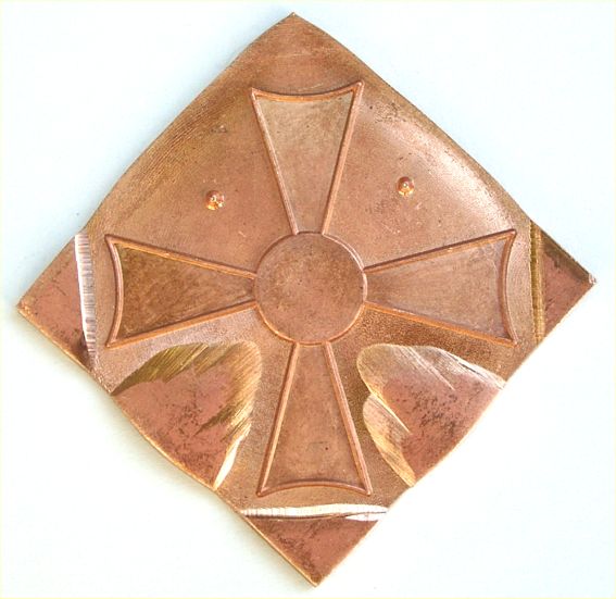 ein weiterer Prägestock in der die Form des Kreuzes, bzw. des Medaillons negativ