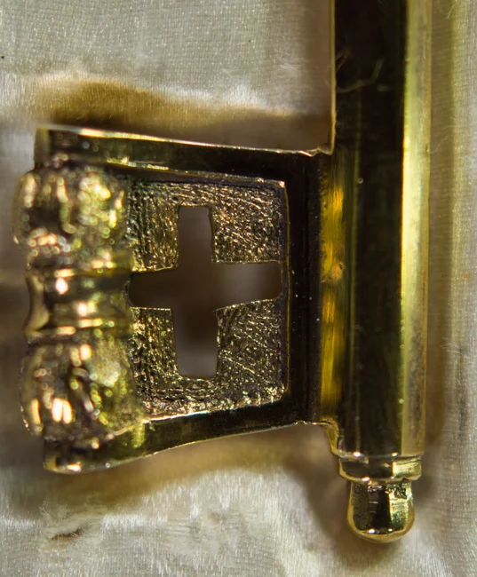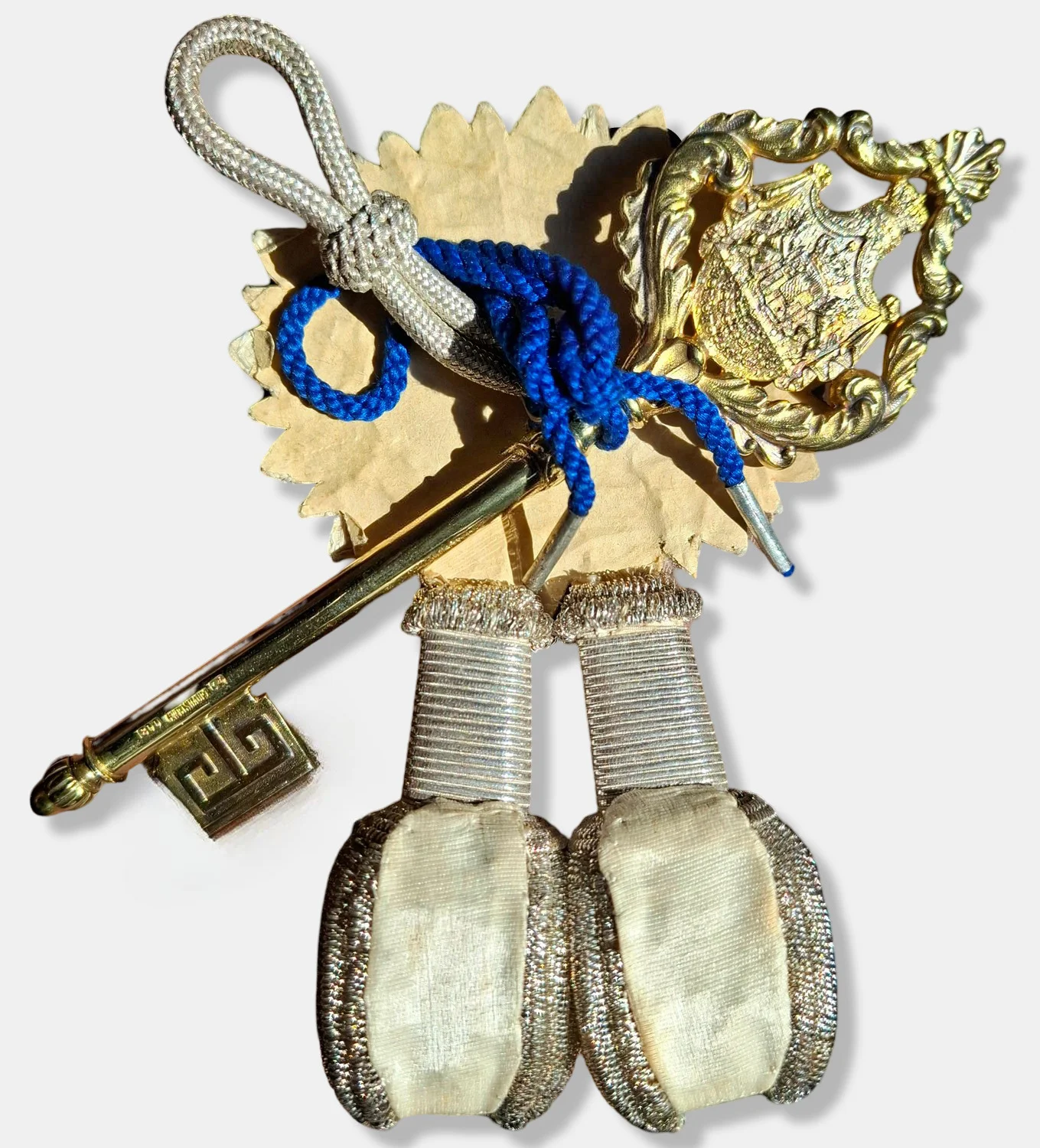 Diese Kombination aus Metallbearbeitung und feiner Textilverarbeitung verlieh den Kammerherrenschlüsseln zusätzlich einen repräsentativen und festlichen Charakter – ein Spiegelbild der höfischen Adelskultur und des hohen Prestiges des jeweiligen Trägers.