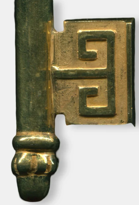 Der Schlüssel selbst hatte oft die Form eines herkömmlichen Schlüssels mit Bart, der jedoch keine Funktion mehr hatte und nur noch von dekorativer Natur war.