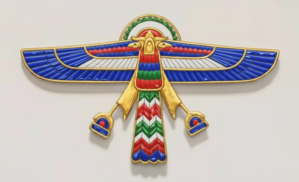 Für das babylonisch-assyrische Abzeichen kommt besonders die Darstellung eines Lamassu vom Palast Königs Saragon II. in Frage, die er um einen zweiten Lamassu und die geflügelte Sonnenscheibe ergänzte.