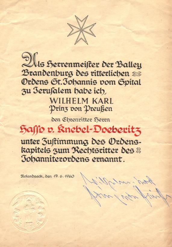 Ritterschlag gepflegt, ohne den kein Johanniter zum Rechtsritter werden kann.